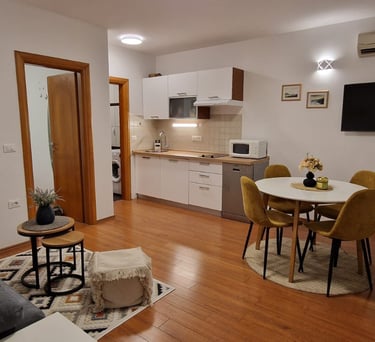 Prostran i svijetao apartman, idealan za obitelji ili duži boravak. Udobno uređen i smješten u blizini svih sadržaja.